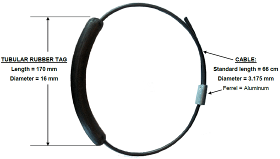 Dimensions Dia16 x 170mm(Tag), 660mm(Cable)